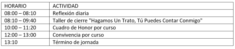 2.- CRONOGRAMA DE ACTIVIDADES ÚLTIMO DÍA DE CLASES